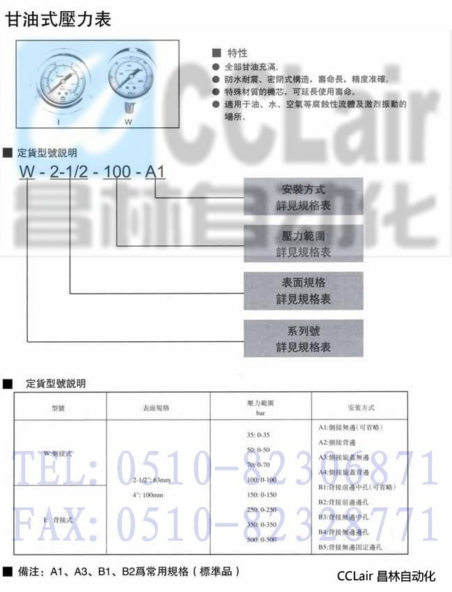 W-2-1/2-100-A1,W-4-100-A1,甘油式压力表