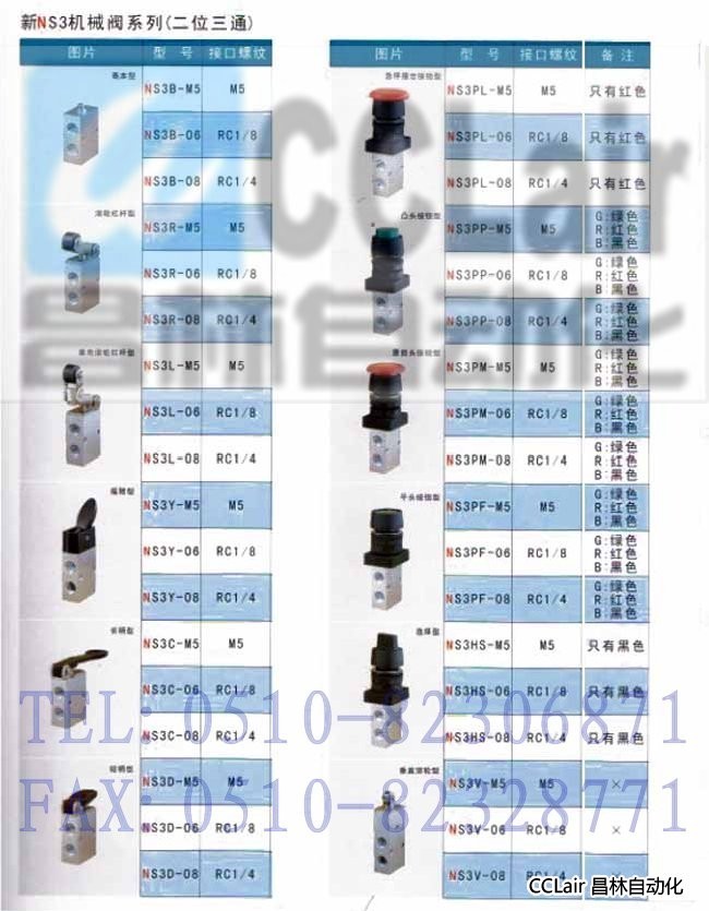 NS3PM-M5,NS3PM-06,NS3PM-08,NS3PF-M5,NS3PF-06,NS3PF-08,二位三通机械阀,