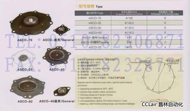 ASCO-76,ASCO-62,ASCO-50,ASCO-40,ASCO-25,脉冲阀膜片