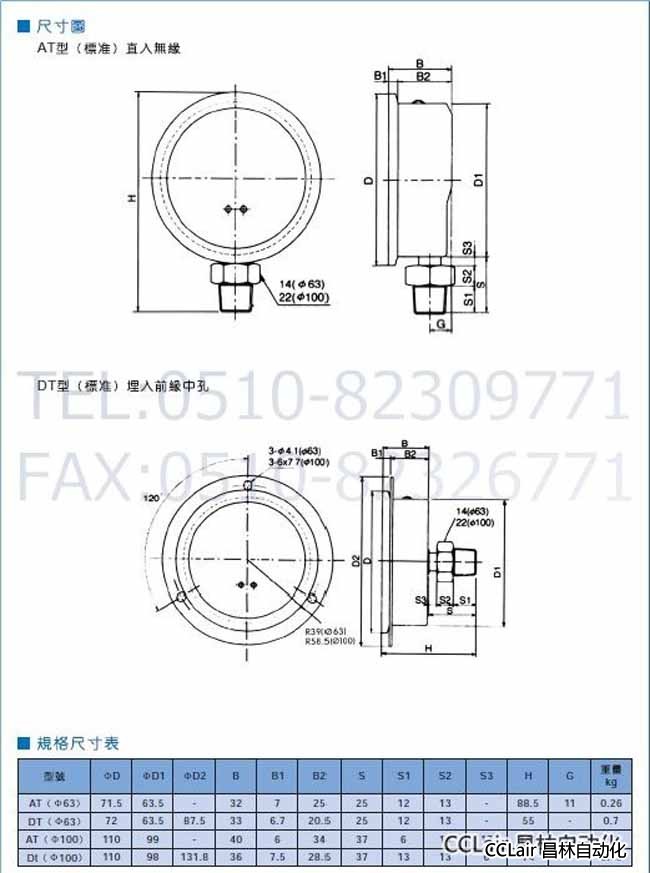 AT-63,AT-100,DT-63,DT-100,耐震压力表