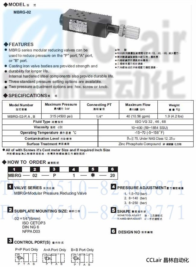 MBRG-02-P,MBRG-02-A,MBRG-02-B,积层型减压阀