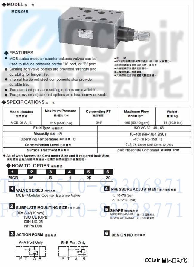MCB-06-A,MCB-06-B,积层型抗衡阀