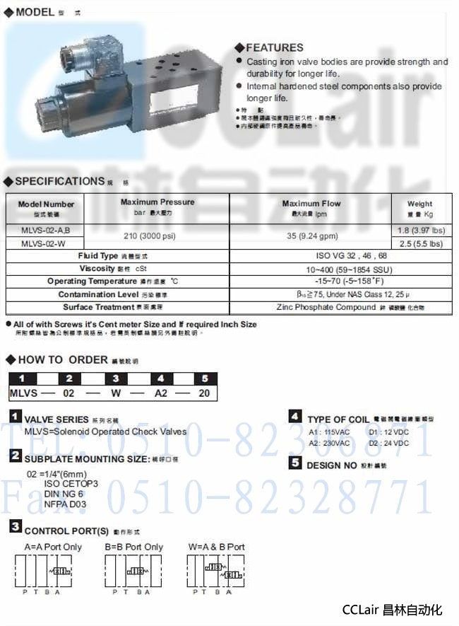 MLVS-02-A,MLVS-02-B,MLVS-02-W,电磁止逆阀,