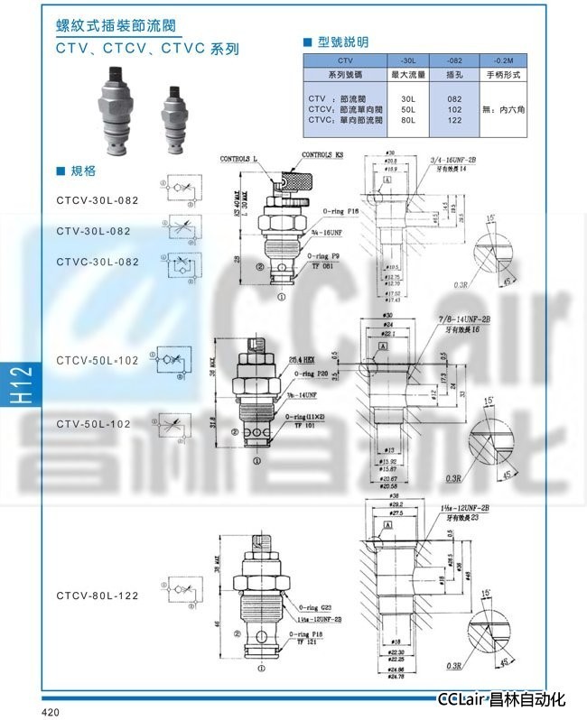 CTCV-30L-082,CTV-30L-082,CTVC-30L-082,螺纹式插装节流阀