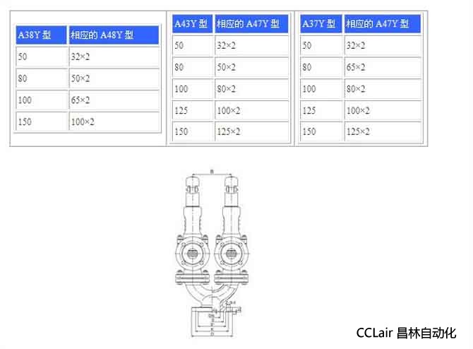 A43H-40,A38Y-16C,A38Y-25,A38Y-40,双联弹簧式安全阀