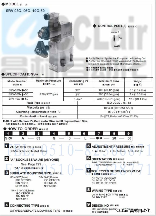 SRV-03G-50,SRV-06G-50,SRV-10G-50,电磁式溢流阀,
