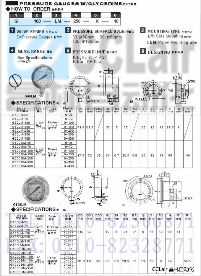 G100LM-350,G100LM-400,G100CBM-350,G100CBM-400,甘油式压计