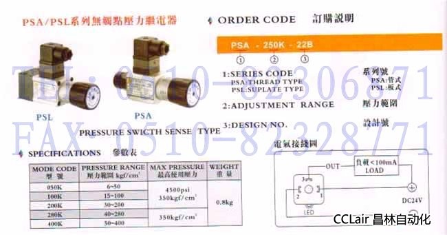 PSL-050K-22B,PSL-100K-22B,PSL-200K-22B,PSL-280K-22B,PSL-400K-22B,压力继电器,