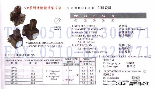 VP-30-F-A1,VP-30-F-A2,VP-40-F-A1,VP-40-F-A2,低压变量叶片泵