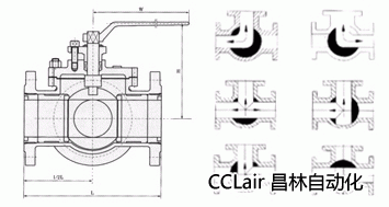 三通球阀可分为L形和T形,L形(Q44F)三通球阀用于介质流向的切换,能使相互垂直的两个通道连接;T形(Q45F)三通球阀用于介质分流、合流及流向切换。T形三通可以使三个通道相互连通或使其中的两个通道连通。三通球阀一般采用两阀座结构,亦可根据用户要求采用四阀座结构。