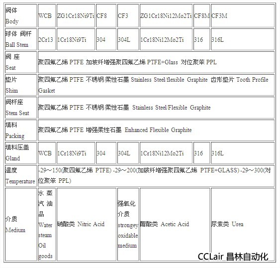 四、不锈钢氧气球阀主要零件材料及性能: