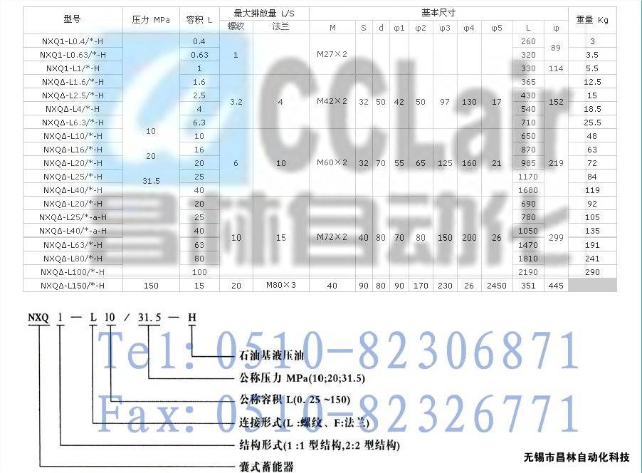 NXQ2-L16/10-H,NXQ2-L16/20-H,NXQ2-L16/31.5-H,蓄能器,昌林蓄能器,蓄能器价格,蓄能器生产厂家