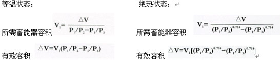 式中:P1=蓄能器充气压力 P2=系统的最低工作压力 P3=系统的最高工作压力