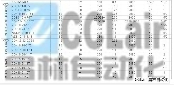 QX10-16-0.75,QX15-10-0.75,QX25-9-1.1,
