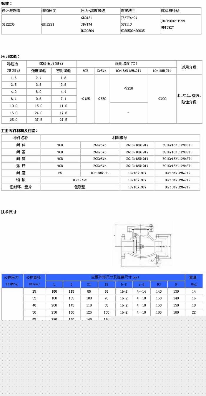 适用介质为:水、油品、蒸汽、酸性介质等。