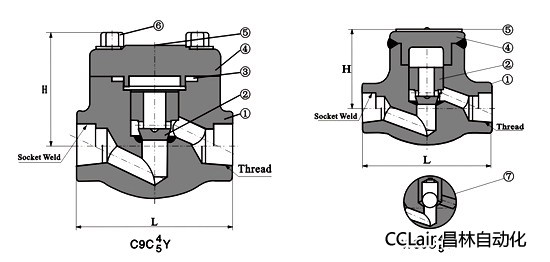 锻钢止回阀有三种阀盖设计形式.第一种是设计形式是焊接式阀盖,按这种设计形式的阀门,其阀体与阀盖用螺纹连接,全焊密封.客户有特殊要求时也可采用透焊连接.第二种是螺栓式阀盖,按这种设计形式设计的阀门,其阀体与阀盖用螺栓螺母连接,缠绕式垫片(316夹柔性石墨制造)密封.客户有特殊要求时也可采用金属环连接.第三种是压力自紧式阀盖,按这种设计形式设计的阀门,其阀体与阀盖用螺纹连接,内压自密环密封.