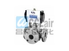 气动三通球阀可分为L形气动三通球阀和T形气动三通球阀,L形(Q44F)三通球阀用于介质流向的切换,能使相互垂直的两个通道连接;T形(Q45F)三通球阀用于介质分流、合流及流向切换。T形三通可以使三个通道相互连通或使其中的两个通道连通。三通球阀一般采用两阀座结构,亦可根据用户要求采用四阀座结构。
