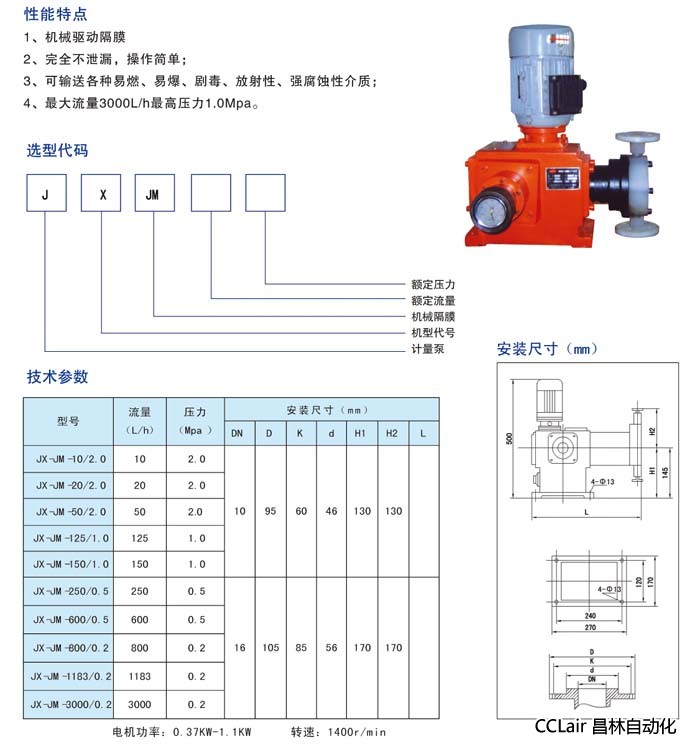 JX-JM-1183/0.2,JX-JM-3000/0.2,JX-JM-800/0.2,机械隔膜计量泵