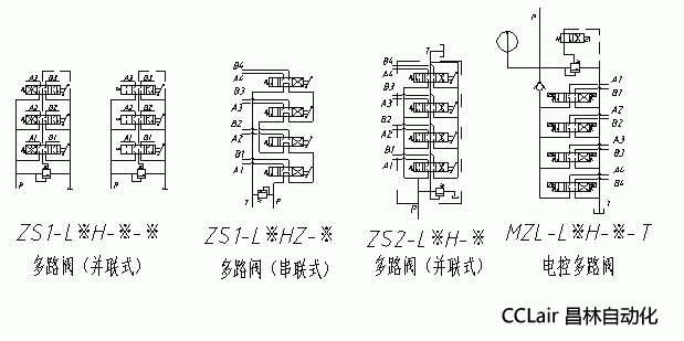 三、多路阀组合形式举例:
