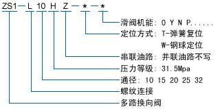 例:ZS1-L10H-4T-40,表示:4片阀都是弹簧复位和“O”型机能。