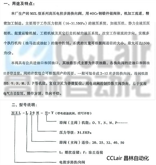 MZL-L20H,MZL-L25H,MZL-L32H,MZL-F40H,MZL-L50H,电控多路换向阀