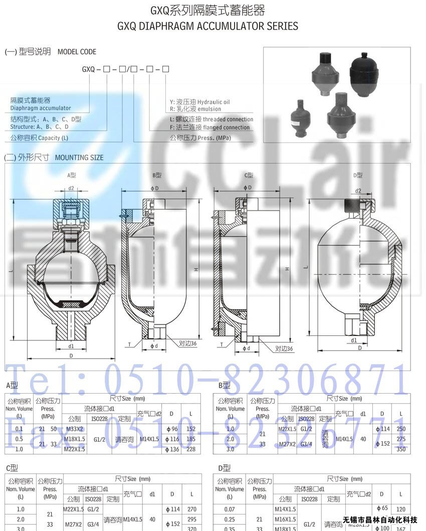 GXQ-D-0.35/33-L-Y,GXQ-D-0.35/33-L-R,GXQ-D-0.35/33-F-Y,GXQ-D-0.35/33-F-R,隔膜式蓄能器,生产厂家,价格