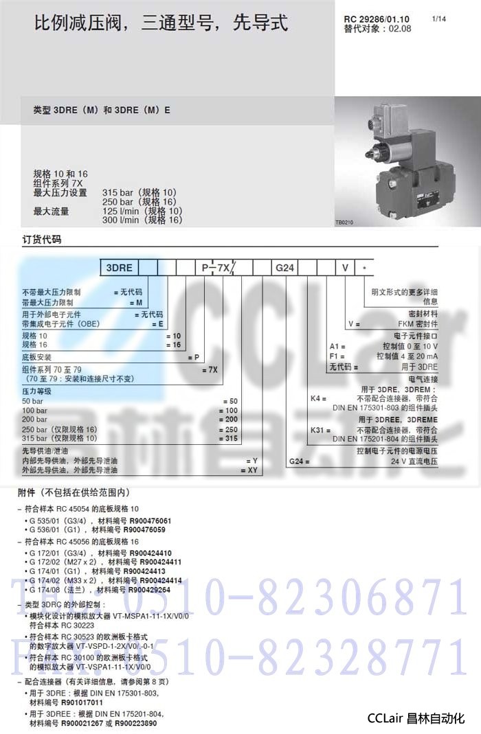 3DREME10P-7X/100YG24K31A1V,3DREM10P-7X/100YG24K4V,先导式比例减压阀,力士乐REXROTH,德国力士乐