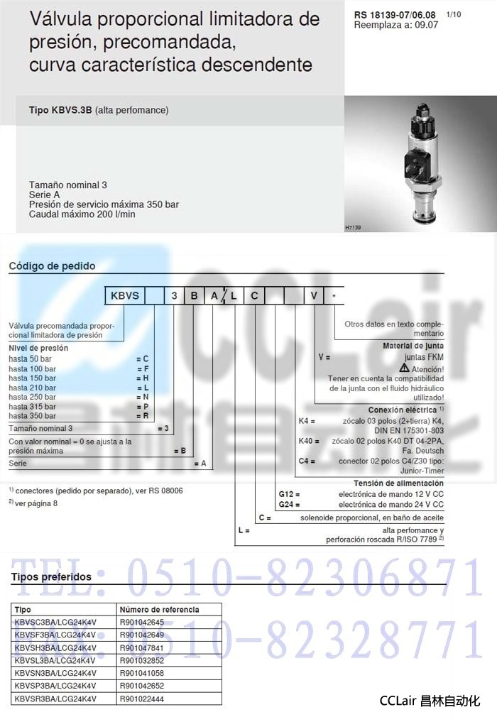 KBVSL3BA/LCG24K4V,KBVSN3BA/LCG24K4V,,先导式比例溢流阀,力士乐REXROTH,德国力士乐