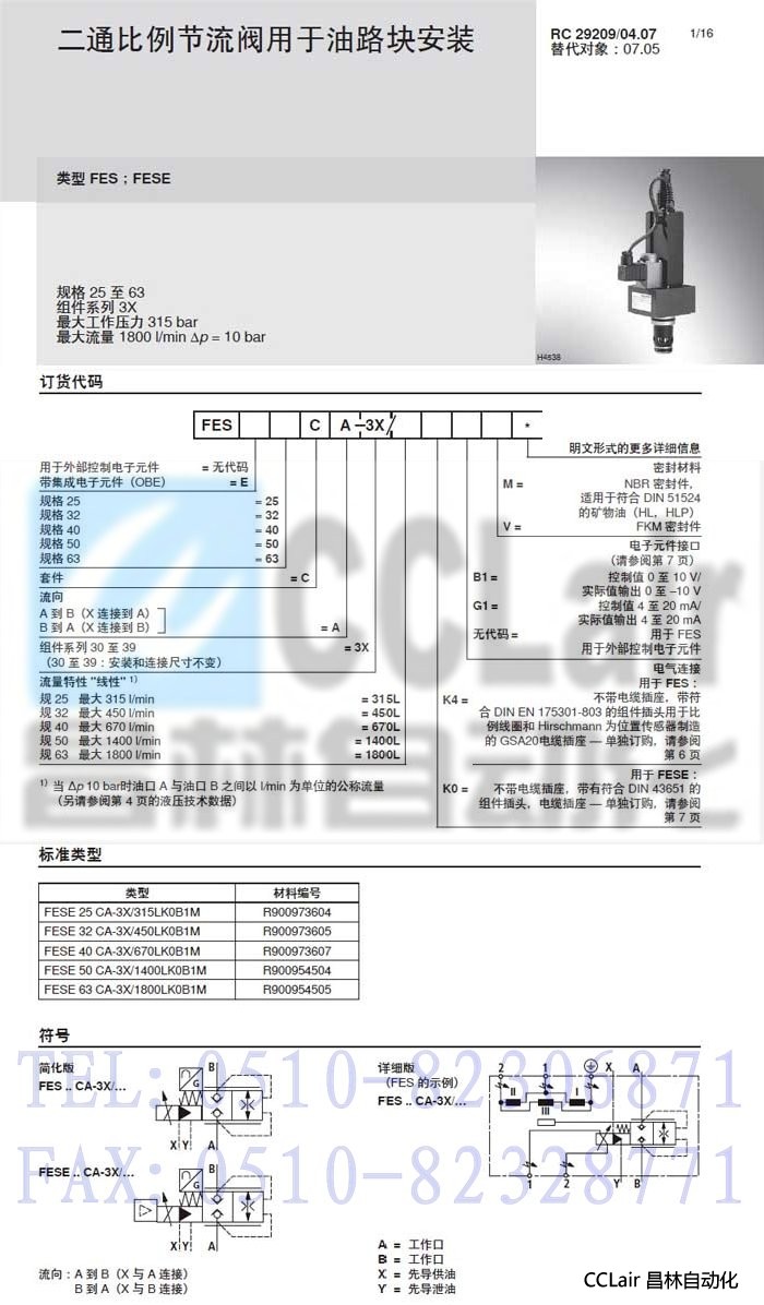 FES32CA-3X/450LK4V,FES32CA-3X/450LK4M,二通先导式比例节流阀,力士乐REXROTH,德国力士乐