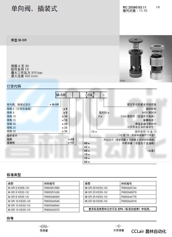R900301889 M-SR6KD05-1X/,R900301896 M-SR6KD15-1X/,单向阀,力士乐REXROTH,德国力士乐