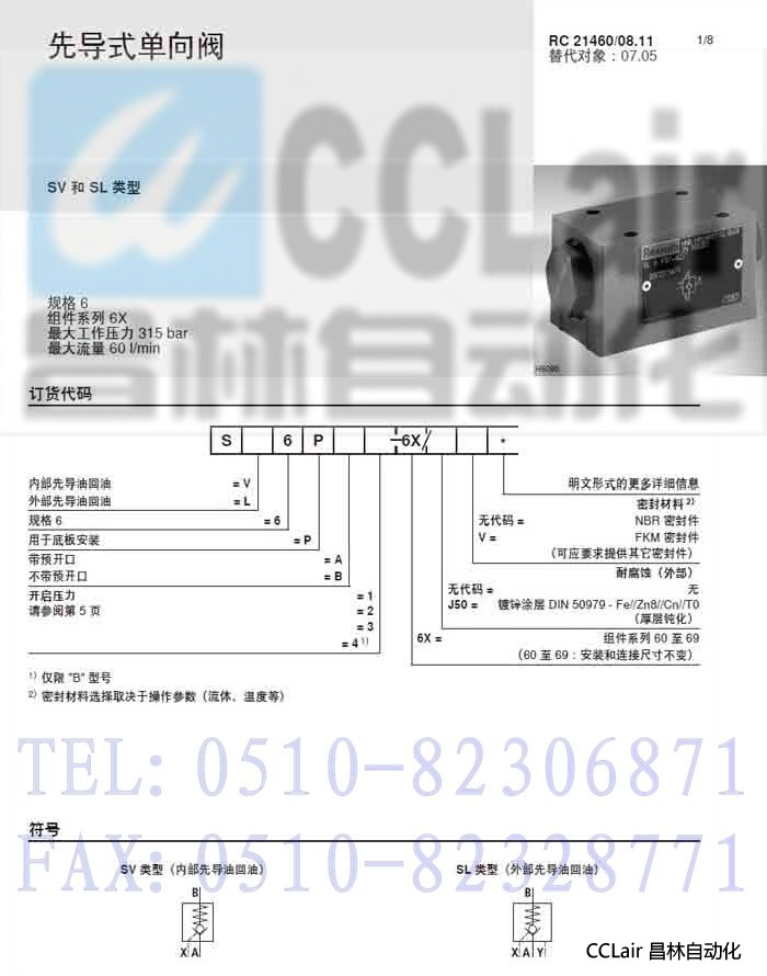 SV6PB1-6X/,SV6PB1-6X/V,SV6PB2-6X/,SV6PB3-6X/V,单向阀,力士乐REXROTH,德国力士乐