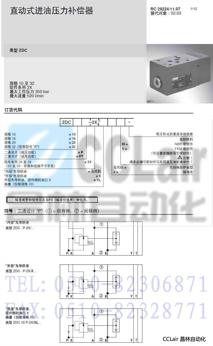 ZDC10PT-2X/M,ZDC10PT-2X/V,ZDC10PT-2X/XM,ZDC10PT-2X/XLM, ,压力补偿器,力士乐REXROTH,德国力士乐