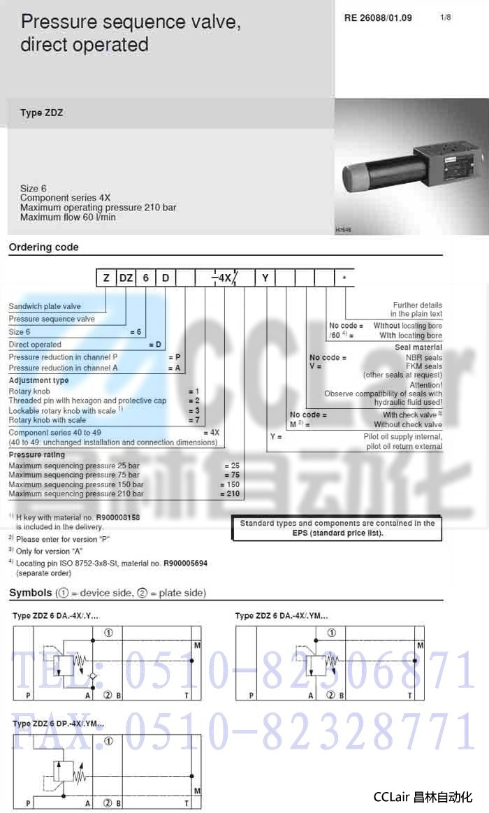 ZDZ6DP2-4X/210YM,直动式压力顺序阀,力士乐REXROTH,德国力士乐