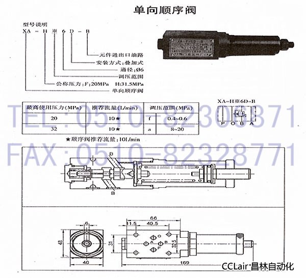 XA-Ha6D-B,XA-Hf6D-B,XA-Fa6D-B,XA-Ff6D-B,单向顺序阀