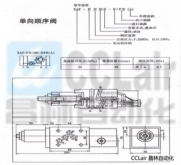 XAF-Fc10D-B/PB(A),单向顺序阀
