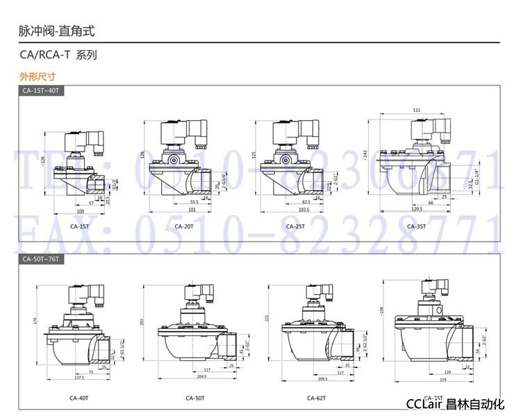 CA/RCA15T,CA/RCA20T,CA/RCA25T,CA/RCA35T,直角式脉冲阀