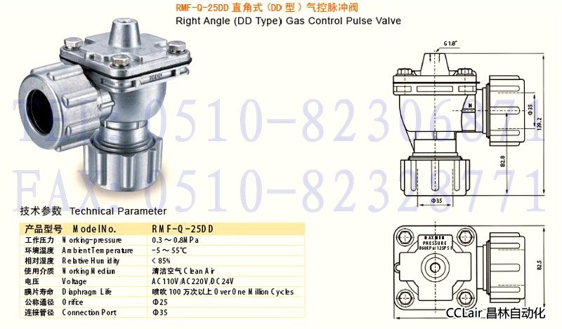 RMF-Q-25DD,直角式(DD型)气控脉冲阀