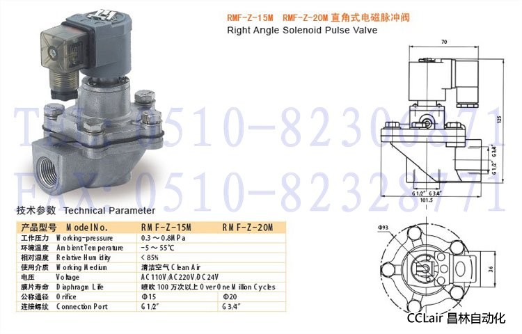 RMF-Z-15M,RMF-Z-20M,直角式电磁脉冲阀