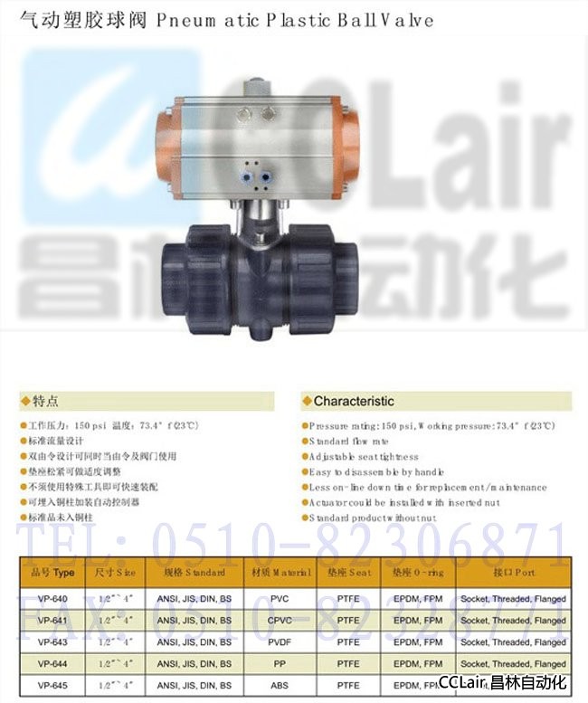 VP-640,VP-641,VP-643,VP-644,VP-645,气动塑胶球阀