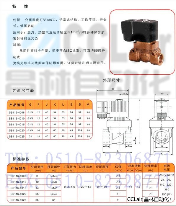 SB116-400B,SB116-4010,SB116-4015,SB116-4020,SB116-4025,高温电磁阀