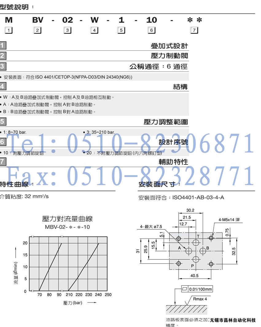 MBV-02-W,MBV-02-A,MBV-02-B,叠加式制动阀,