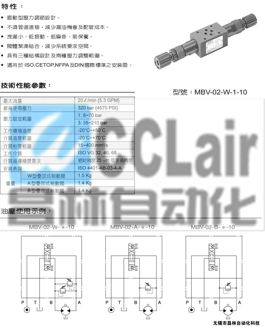 MBV-02-W,MBV-02-A,MBV-02-B,叠加式制动阀