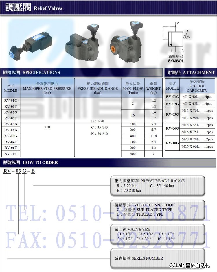 RV-01G-B,RV-01G-C,RV-01G-H,RV-01T-B,RV-01T-C,RV-01T-H,调压阀