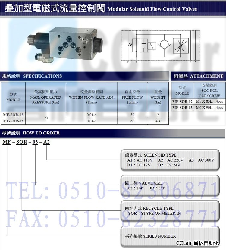 MF-SOR-02,MF-SOR-03,叠加型电磁式流量控制阀