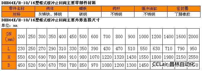 DHH44X/H-10/16型蝶式缓冲止回阀主要技术参数