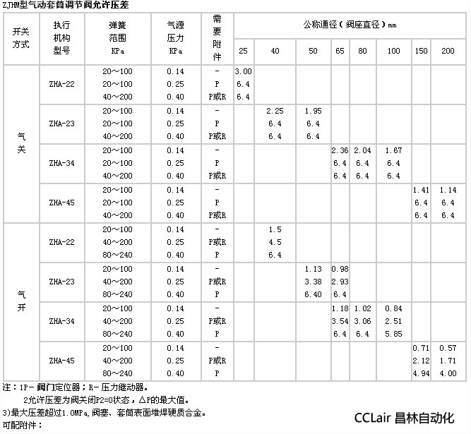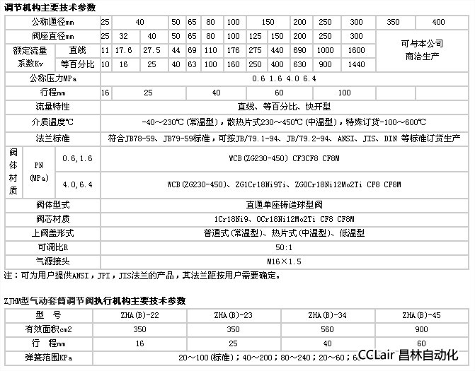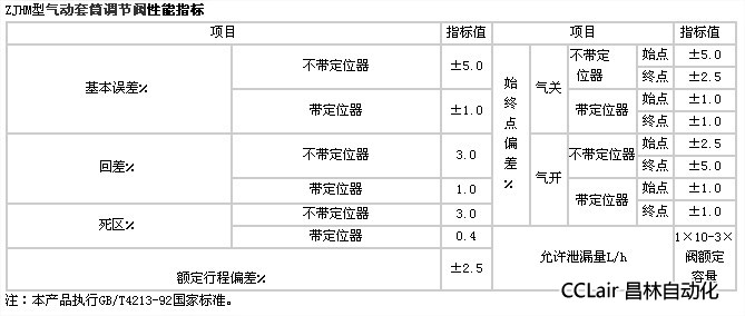 ZJHM型气动套筒调节阀主要技术参数和性能指标