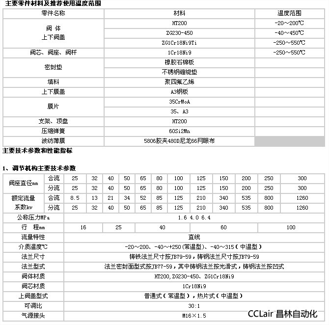 本系列产品有三通合流及三通分流两种。公称压力有PN16、40、64;公称通径范围DN25—300。适用流体温度由-60℃至+450℃。泄漏量标准为Ⅳ级。流量特性有直线、抛物线两种。