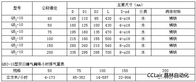 ⑴注:D>350mm管路请选单口排气阀(QB1-10)。