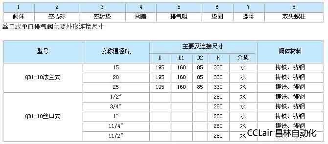 QB1丝口式单口排气阀主要由阀体、阀门、上盖、阀杆、浮球、排气嘴等组成。用于小口径管道上管子为φ50-200,它作为管道的排气作用,使管道不会出现闭气、气阻,如水泵停电时管内随时会出现负压力,自动吸气可保护管道安全。