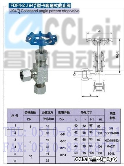 J94W-16,J94W-25,J94W-64,J94W-160,卡套角式针型阀